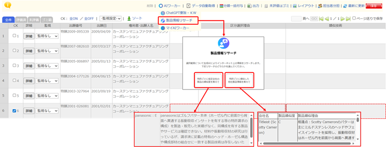 ChatGPTを使用して、インターネット上の製品技術情報から関連性/類似性を調査します。
